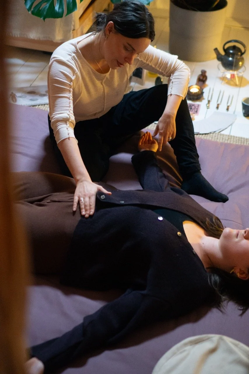 Enrootment Method inspired, Chi Nei Tsang and myofascial techniques.